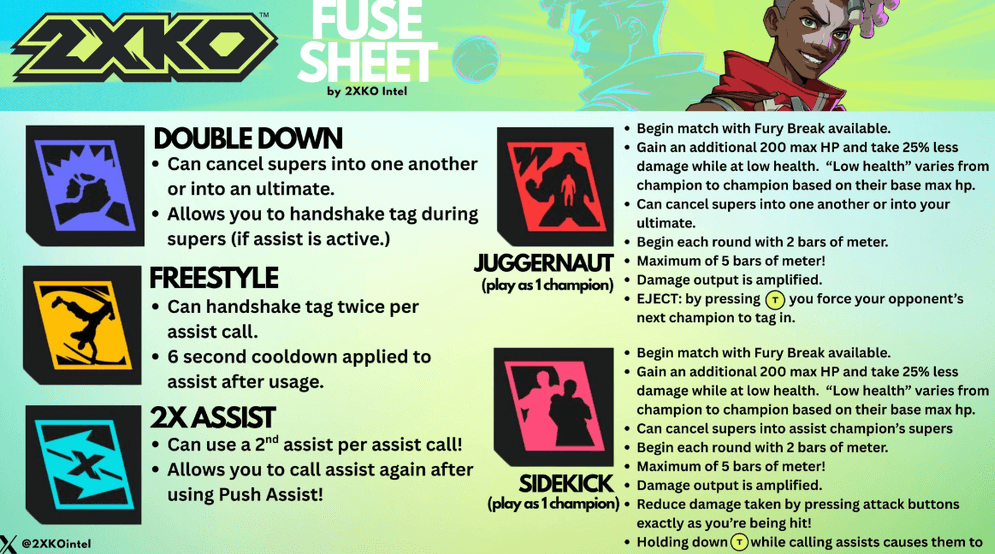 Với người mới chơi 2XKO thì Tên nhân vật và lối chơi trong game 2XKO là điều đầu tiên cần biết, sau đó chúng ta cần tìm hiểu về combo, tag, và fuse để thắng những trận đầu tiên và nhiều điều khác nữa mà chúng tối sẽ đề cập trong các bài viết liên quan đến 2XKO sau này.