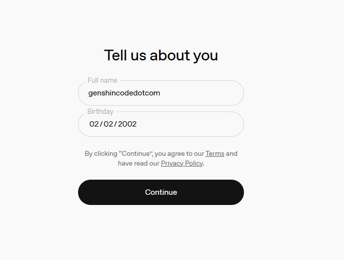 Bước 5: Nhập tên, ngày tháng năm sinh của bạn vào rồi chọn Continue để tiếp tục.