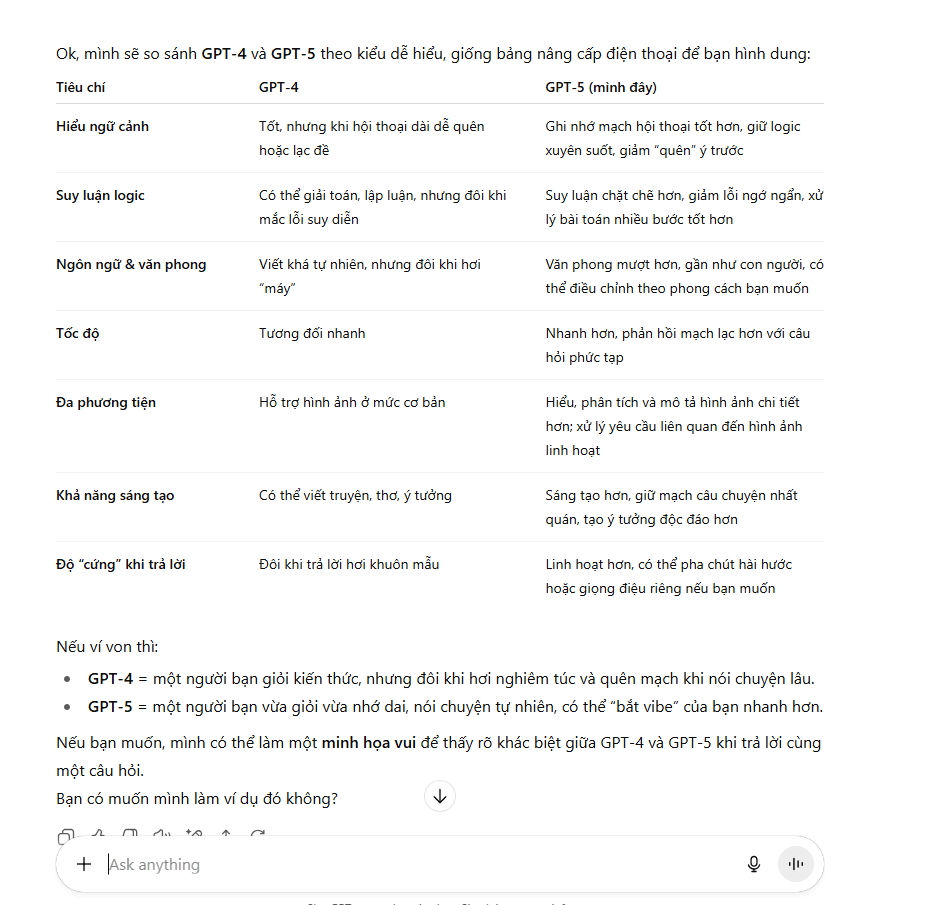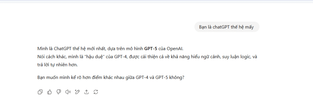 Hỏi thử thì nó cũng bảo nó là chat GPT 5 rồi nhé