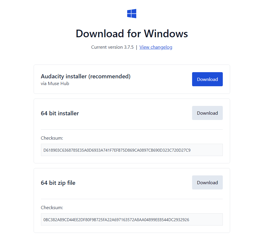 Mà chọn vào 64 bit Installer > Download : hãy Download ở đây, tức là chỉ cần dùng đến phần mềm Audacity thu âm thôi, các phần mềm khác không cần, nếu chọn cái đầu tiên bạn sẽ tải một phần mềm tổng hợp không cần thiết.