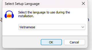 Bước 4: Chọn ngôn ngữ, xịn một cái là có cả ngôn ngữ Việt Nam luôn nhé, > rồi chọn vào OK để bắt đầu cài đặt.