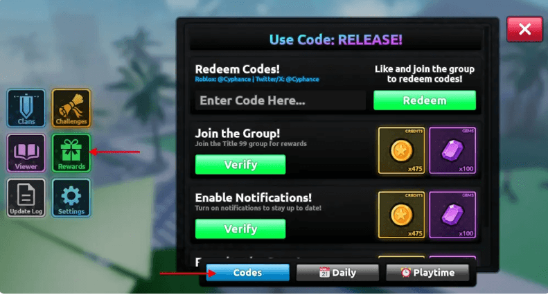 Bước 2: Chọn vào Rewards > Chọn tiếp Code>