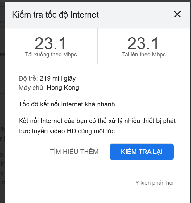 Speed Test là một công cụ kiểm tra tốc độ internet của bạn. Giờ ngay trên trang chủ Google bạn có thể nhanh chóng kiểm tra được mà không cần phải vào vào Website. Thêm nữa điều mà mình thấy quan trọng nhất chính Check Trên Google nó khách quan hơn bởi thường kéo sang các server nước lân cận ( như Singapore hoặc Nhật, Hồng Kong…