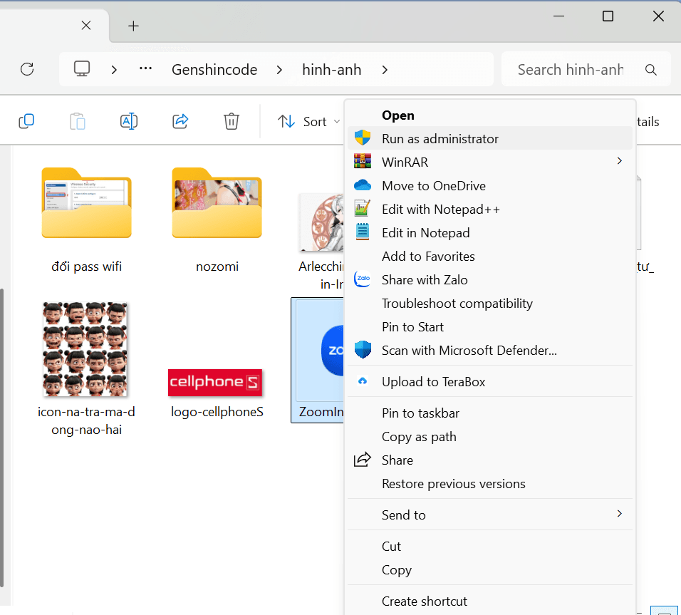 Bước 2: Click chuột phải vào file tải về chọn Run as administrator